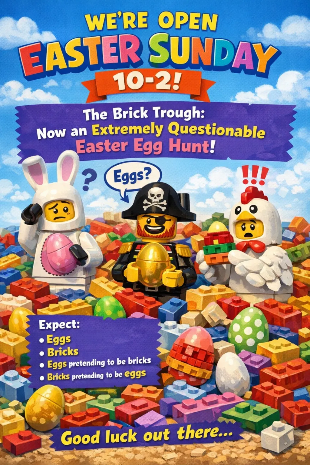 Each paying guest can hunt for one egg. Pop in, build, hunt and enjoy a bit of Easter magic at Brick Club